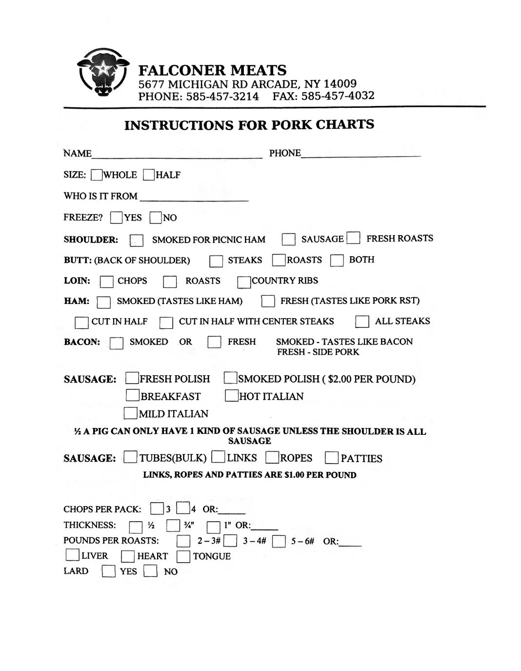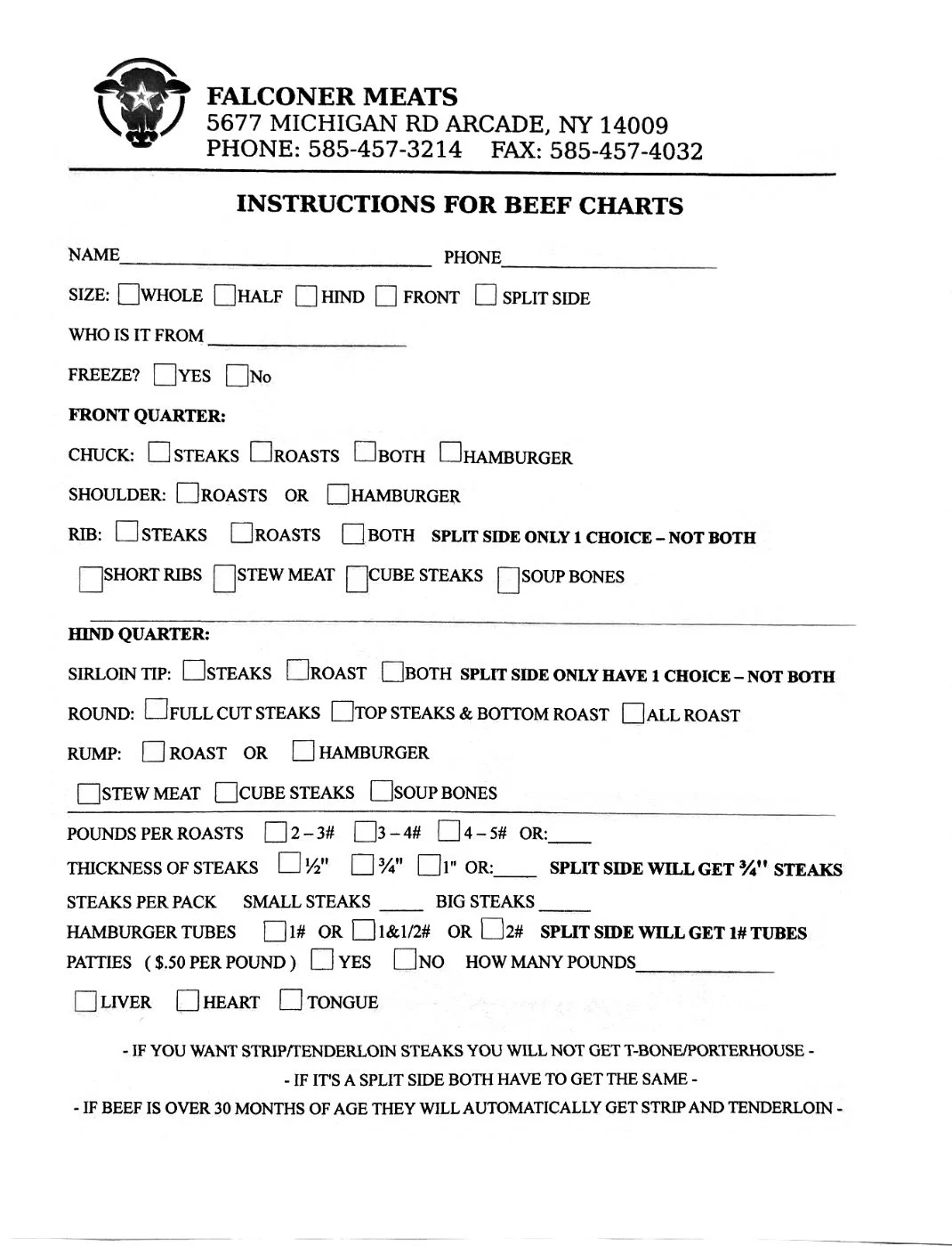 Pricing (subject to change): Whole/Half - $5.29/lb. Front ¼ - $4.89/lb. Hind ¼ - $5.59/lb.